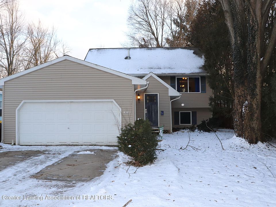 4 Bedroom, 2 Full Baths, Raised Ranch Style Home in Holt Schools. This Home has 2 separate Living Areas, 2 Bedrooms up and 2 Bedrooms down. The Main Upper Bedroom has a Slider that goes out onto the Deck that is across the whole backside of the Home. Fully Fenced-in Yard with nice larger Trees. The attached Garage has a Breezeway Hallway leading to the Home. Located on a Dead End Street. Priced to sell.