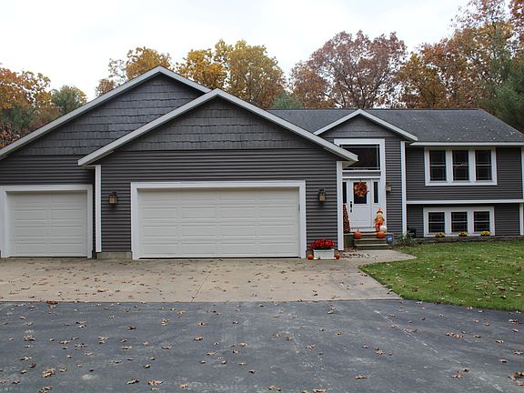 Meticulously maintained Custom built home in 2005 with many upgrades. Situated on a 2 wooded acres hidden back off the road for privacy. Kitchen has granite counters tops, gorgeous top of the line Schrock maple cabinetry with Schrock cherry wood island and mirrored back splash. Master bath has 4 x 6 titled shower with glass door and corian counter tops. Floor plan was meant for open family living on the main level and lower level. Three stall attached heated garage, hot tub , storage building, totally redone back deck with composite decking for easy maintenance. Call today for a private showing.