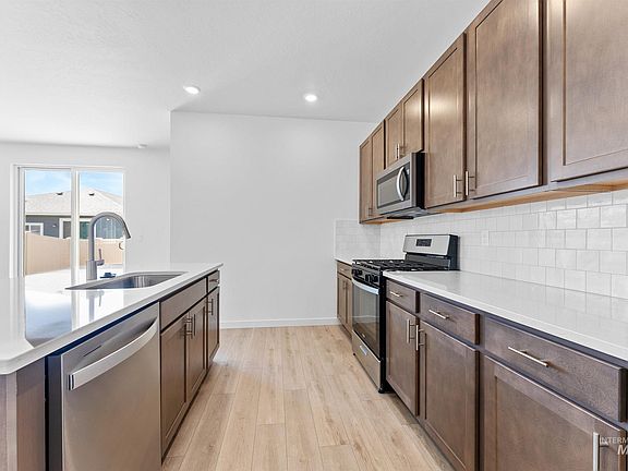 Come see this ENERGY STAR® certified single-story. It features an open floor plan, luxury vinyl plank flooring throughout the main living areas and an open great room. Modern kitchen showcases quartz countertops, full backsplash, stainless appliances, island & single bowl undermount sink. Primary suite boasts walk-in closet. On-site sales office and staged model homes open Monday 3PM-6PM and Thursday-Sunday 10AM-6PM located at 4133 S. Colditz Way, Meridian, ID 83642. PHOTO'S SIMILAR