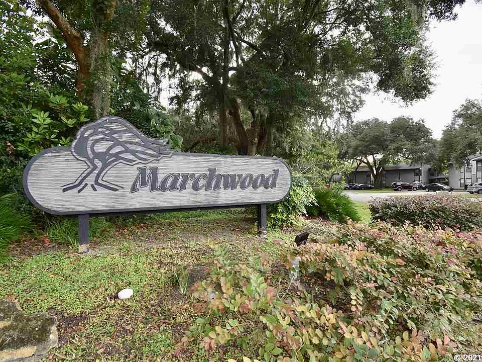 This clean, well-maintained townhome located in the wonderful Marchwood neighborhood, which is very close to the University of Florida Campus, and Butler Shopping Center. Home features: open living area, tile flooring throughout the downstairs, vaulted ceilings, one bedroom downstairs, one bedroom upstairs. A glass sliding door leads to the back common area, there is a storage room in the back. A skylight window is in the stairs area. Laminate flooring is throughout the 2nd floor hallway and bedroom. Laundry hook up, roof and HVAC were replaced around 2010 and 2011, hot water heater was replaced Oct 2015. Low HOA fees and community pool living.