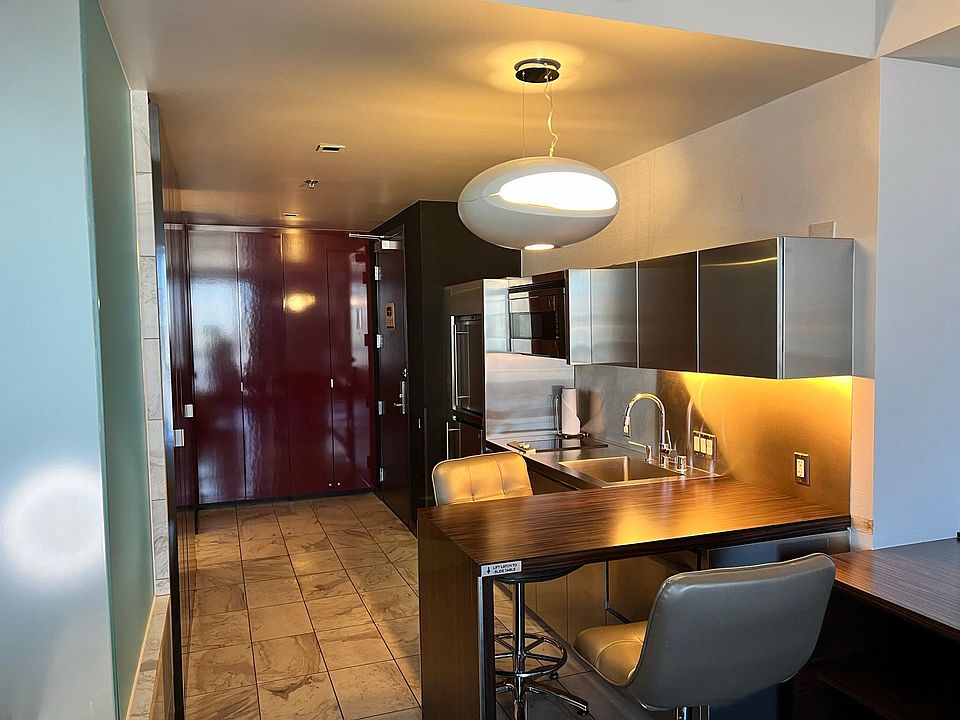 High rise condo hotel, 11th floor mountain view studio, located in AAA Four Star Diamond Palms Place Resort and Spa. 1.2 miles from the Strip, centrally located with easy access to dining, shopping and entertainment. World class amenities including spa, fitness center, and onsite dining. Fully furnished with king bed, sleeper sofa, 2 TV's rainfall shower, jetted tub, and kitchen with stainless appliances. One month min lease, credit score 650+, doubt security deposit might be requited. Case by case. Owner makes the final decision. Income and background check needs to be verified.