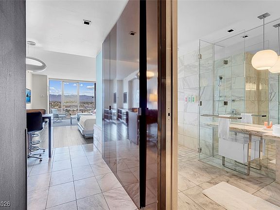 Owner Financing Available! Airbnb Approved Stunning 11th-floor unit at Palms Place! This fully furnished contemporary unit features floor-to-ceiling windows, a sleek kitchen with stainless steel appliances and breakfast bar, and elegant finishes including imported hardwood and marble flooring. Enjoy a king-size bed, queen sofa sleeper, and a luxurious spa-style bathroom with rainfall shower. Resort-style living includes 24-hour valet and security, concierge services, state-of-the-art fitness center, Drift Spa, pool, hot tub, and sun deck. Ideally located just one mile from the Las Vegas Strip and within walking distance to top dining options including Sushi, Korean BBQ, Starbucks, and Coffee Bean. All utilities included in HOA!