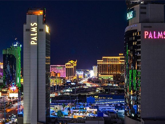 Wow! Elevate your lifestyle with this amazing 1220 sq ft. 1 bedroom, corner condo-hotel Palms Place unit on the 23rd floor! Views! Breathtaking panoramic views of the iconic Las Vegas Strip from 2 balconies & through floor-to ceiling glass walls. This fully furnished suite features a large living area w/ spectacular Strip Views! Spacious primary bath w/ an oversized shower & separate tub, overlooking the Strip. Palms Place has direct access to Palms Resort & Casino via an indoor moving walkway: you’re just moments away from the excitement. Services include concierge, valet parking, pool cabanas, fine dining, a luxurious spa and state-of-the-art gyms. Use the unit alternately as a personal retreat or an investment opportunity. This unit can be easily used as an Airbnb or join the in-house rental program. Situated in the heart of Las Vegas, you're just moments away from top attractions, shopping, & vibrant entertainment! See this unit today and EXPERIENCE Las Vegas!
