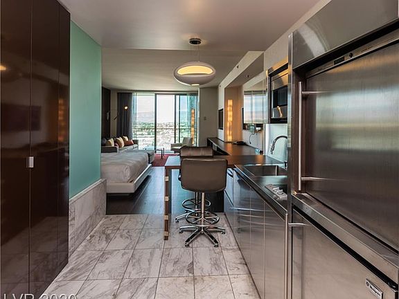 Palms Place 25th floor Mountain view studio suite with a balcony. Only 1.2 miles from the Strip, easy access to shopping, dining, and entertainment. Breathtaking views of the Red Rock Canyon and Mt. Charleston. Loaded with amenities! Pools, spa, restaurant, room service, fitness center, complimentary limo service to owner. Fully furnished unit features King Bed, SS Appliances, Flat Screen TV's, Island Kitchen, Luxury Shower w/ separate large Tub.