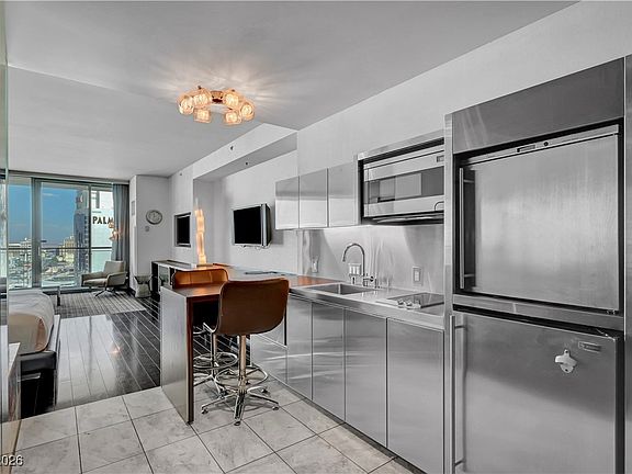 Palms Place Condotel w/ breathtaking panoramic LV Strip views! This fully furnished unit is turn-key & perfect for rental income or a private getaway. Floor-to-ceiling windows frame the dazzling skyline, while the sleek kitchen offers style & convenience. The spa-inspired bath features stone surfaces, mirrors, a spacious step-in shower & ample room. The open-concept BR/LR combo includes a plush king bed, built-in TVs, custom lighting, smart storage, desk & a sofa w/ pull-out bed for guests. Palms Place delivers resort-style amenities: sparkling pool, relaxing spa, state-of-the-art fitness ctr, event space, concierge, valet & an onsite rental program for hands-free management.. Experience modern design, world-class amenities & an unbeatable location just mins from the Strip. Whether you seek investment potential or a personal Vegas escape, this unit offers both luxury & lifestyle in one. This property isn’t just a condo—it’s your Las Vegas lifestyle investment.