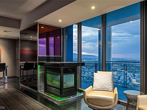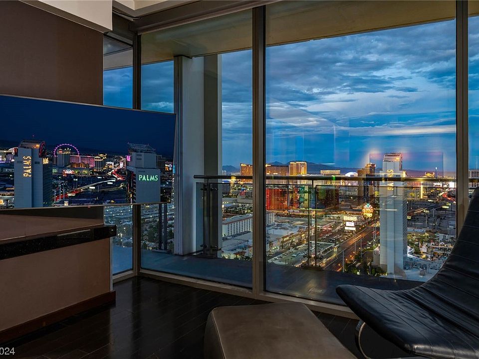 A luxurious, highly upgraded corner one-bedroom suite on the 36th Floor of Palms Place condo-hotel, offering unmatched Strip views and upscale living! Marvel at the wraparound balcony & spectacular views of the Las Vegas Strip and mountains. Upgrades include custom fireplace modification opening the view, custom TV mounts in the living room and bedroom designed for better views of the Strip, custom lighting, upgraded dining table surface, and more. Access premier dining, shopping, and entertainment with ease. Revel in world-class amenities - resort pool, fitness center, & exquisite dining - all within your reach! Fully furnished & flexible short-term rental options!