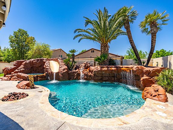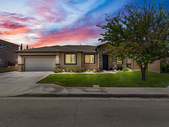 Prepare to be amazed by this one-of-a-kind, single-story West Lancaster dream home! The ultimate entertainer's backyard awaits—featuring a **stunning custom pool with a rock waterfall, grotto, water slide, and elevated spa that spills into the pool below**. Relax beneath the **beautiful covered patio with stained and stamped concrete**, or entertain in style with a **built-in BBQ island**, bar seating, fridge, and more. Low-maintenance landscaping includes artificial turf and DG, creating a pristine, water-wise yard.