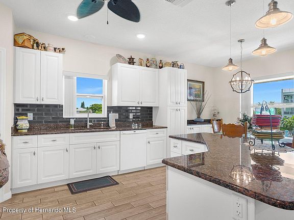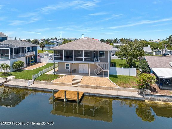 NEWER DIRECT GULF ACCESS HOME with 3 bedrooms + 2 bathroom + 2 car garage situated on ONE AND A HALF LOTS - 90 feet of water frontage instead of 60 feet; more room for your boats and your water toys!! Close to the GULF for quick access out with your boar! Deep water canal! This waterfront home was recently built in 2019 so everything is relatively new!! NEWER ROOF!! NEWER AC!! NEWER Windows and doors!! NEWER Seawall, cap and knee wall! NEWER Dock! NEWER EVERYTHING and you don't have to wait for it to be built!! Short term rentals allowed! OPEN FLOOR PLAN! Light and bright! Lots of natural light - just feels good inside!! Modern railing! Gorgeous, upgraded home near the cul de sac with over 90 feet on the water! Spacious main floor offers 1,785 sq ft of living space! The bottom floor is a HUGE blank canvas! 4,478 total sq feet! Large covered, screened-in balcony lanai along the back of the home overlooking the backyard and water - spacious for entertaining and relaxing to the sunrises to start your days or grilling out after a day of boating and fishing!! Gorgeous ceramic tile plank floors throughout the whole home!! The master bedroom is VERY LARGE with a VERY SPACIOUS MASTER ENSUITE BATHROOM with dual sinks, granite countertops, large ceramic tiled walk-in shower, private toilet closet, two large walk-in closets, connected laundry room to one of the master closets! Private balcony off the master suite facing west for sunsets! Second bathroom also has a granite countertop and large ceramic tiled shower! Gorgeous open kitchen and floor plan makes this home feels spacious, light and bright! White upgraded cabinets, granite counter tops and breakfast bar, kitchen dinette, large family room, large screened and covered back lanai with modern horizontal railing to enjoy your waterfront views, beautiful sunrises, and occasional dolphins in the canal! Easy pull through half circle driveway! Grand entrance! Breakaway walls down stairs for a closed in garage/and SO MUCH EXTRA SPACE! Easy to maintain landscaping! Fenced yard for pets! NO HOA! Garage is deep for 2 cars or adda second garage door to the right of the stairs to add additional inside parking spaces! New seawall, cap, and knee wall...and new dock in 2018! Quick and easy access to the Gulf of Mexico! Enjoy hanging out with friends in your boat on the flats, boating to Anclote Island for gorgeous white sand beaches you can pull your boat up to to swim! Enjoy a short ride up to the Homosassa River and/or Crystal River for swimming in the springs and with the manatees! A beautiful lifestyle on Hernando Beach with restaurants, bars with live music, nature preserve hiking, and a strong community feeling! Waterfront living with direct gulf access, no bridges to go under, and low flood insurance (only an AE flood zone).