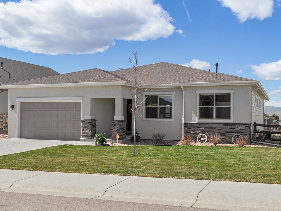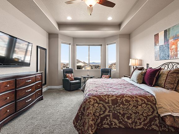 Welcome Home! This beautiful home was built by Bridgewater and it is one of their most desirable models available, The Hudson. This gorgeous home has 4 bedrooms and 3 bathrooms along with a warm and inviting wide open floor plan that is full of natural light. Interior features include upgrades such as hickory wood floors, upgraded Quartz countertops, a gourmet kitchen with a large Quartz island, new stainless-steel appliances, a gas range with hood, a gas fireplace, elevated ceilings, a luxurious master bath, whole house humidifier and central air conditioning. The professionally finished basement includes two bedrooms and a full bathroom, workout room and a large family room that is plumbed for a wet bar. Located on a large corner lot that has been professionally landscaped you will also find a relaxing 11 x 14 covered deck with a priceless view of the Rocky Mountains. Topping things off is a finished oversized 3 car tandem garage that will make your neighbors jealous!