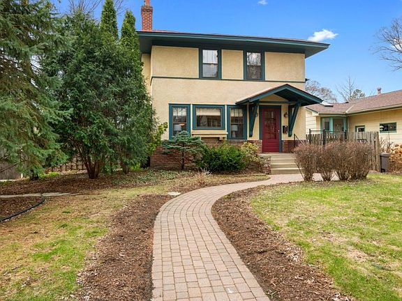 Picture perfect 2 story located within walking distance to shops, theatre, grocery, Minnehaha Creek and Browndale Park. Main level has large living room with wood burning frplc, formal dining room with built-in buffet, eat-in kit/office and stunning 4 season porch addition with gas fireplace and adjacent screen porch. Upper level features Master with updated tile bath with heated flooring and walk-in shower. Three additional large bedrooms with original hardwood floors. Fenced backyard provides privacy, lots of trees and wildlife. Newer roof and lots of room for storage.