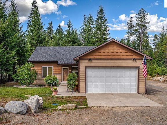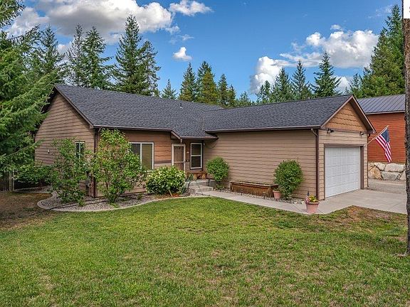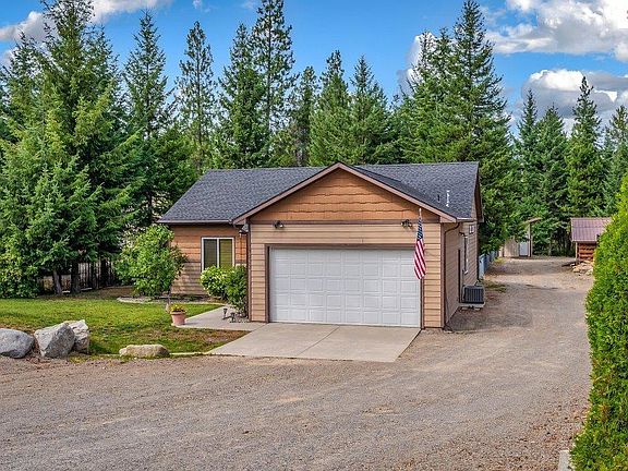 Well-loved home nestled on a partially treed .63 acre lot in desirable Spirit Lake Village! The floor plan offers 3 beds, 2 baths, an open living space, vaulted ceilings in the living room, laminate floors in the kitchen and dining, central AC, built in shelves in the garage, and more. The fully fenced, beautiful back yard landscaping flows into the forest, featuring a garden area, tree house, fire pit and dog house. The front yard is landscaped and features borders built with boulders. Top it off with 2 large storage buildings, plenty of parking, and room for a shop. This home has a lot to offer, schedule your private showing today.