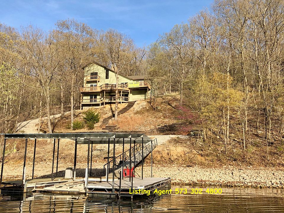MOTIVATED SELLER" Secluded, Lake-Front home with character. This home has a view of the main channel from almost every room, while in a cove setting. The Cove is great for paddle boats, Kayaks, or just coving, it's a rare find. This freshly appointed 3 Lg. bedrooms 2.5 bath awaits your arrival. This home features a year-round lake view, open floor plan, large fireplace, new paint, new flooring, new bathrooms, new HVAC, new hot water tank and new driveway. Home has a cart path to the dock. Dock has a swim platform and a boat lift. The lower level is unfinished and is plumbed for another bath and set up for another 2 bedrooms and living area. Home is located in one of the few secluded areas in Osage Beach. Close to offices, shops, and restaurants, this gem of home awaits the discerning buyer. This home is waiting for someone like you to lovingly care for it, in the years to come. The dock is perfect for a pontoon boat and PWC. Keep your large boat at a nearby marina.