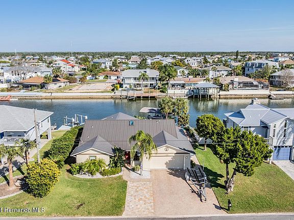 Active Under Contract, accepting Back up Offers. Stunning Hernando Beach Canal Front Home with Private Dock, Boat Lift & Gulf Access! Experience the ultimate waterfront lifestyle in this Hernando Beach canal-front home with direct Gulf access! Featuring a private dock and boat lift, this home is perfect for boating enthusiasts seeking adventure on the open water. Plus, with no HOA or deed restrictions, you have the freedom to truly make this home your own. Step outside and relax in your private heated swimming pool, complete with a pavered pool deck and covered patio, ideal for year-round enjoyment. Inside, you'll find a spacious open floor plan, perfect for entertaining. The great room flows seamlessly into the dining and kitchen areas, creating a bright and airy atmosphere. The chef's kitchen is a showstopper, featuring granite countertops, wood cabinets, stainless steel appliances, and plenty of eating space. Gorgeous design touches are found throughout the home, adding to its charm and elegance. The enclosed rear porch/sun room provides additional living space that's perfect for relaxing and taking in the tranquil waterfront views. All bedrooms are generously sized, while the primary suite offers a large walk-in closet and an ensuite bathroom with a dual sink vanity and walk-in shower. Nestled in a quiet Gulf Coast neighborhood, this exceptional waterfront home won't last long. Don't miss your chance, schedule your private showing today!