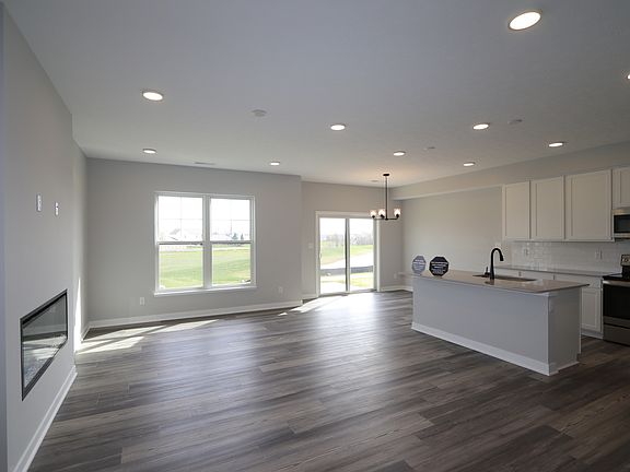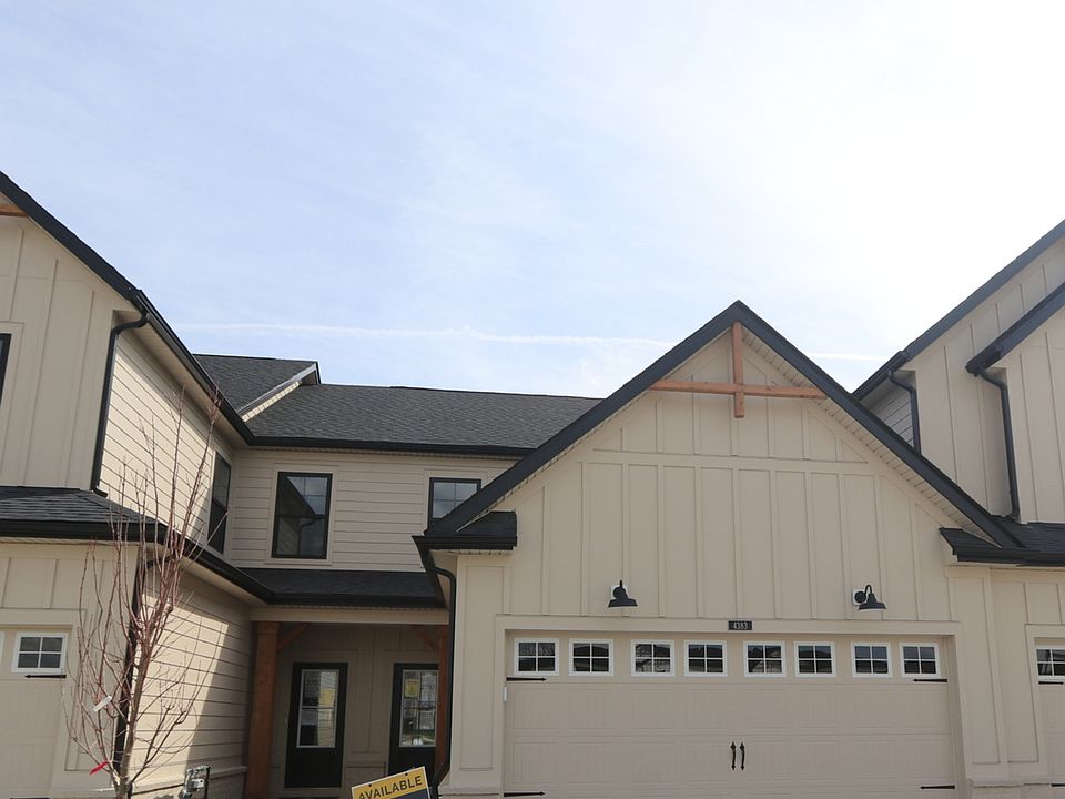 This stunning 2-story townhome at 4383 Douro Trail spans across 1,560 square feet and boasts 2 bedrooms, 2.5 bathrooms, ample natural light, a modern open-concept kitchen, and exquisite finishes that will take your breath away. The elegant white vinyl siding with sleek black accents perfectly complements the contemporary layout that awaits you inside. Inside, you'll find a cozy half bathroom and a convenient coat closet just off the foyer. As you make your way into the bright and spacious gathering room and kitchen, you'll pass by the staircase leading to the second floor. The gathering room is the perfect canvas for you to unleash your creativity and design the space of your dreams. Whether you prefer a neutral boho theme or a modern farmhouse look, the possibilities are endless! The kitchen island overlooks the family room, so you can easily watch TV while preparing dinner. Equipped with all the latest trends and appliances, this kitchen is perfect for all your culinary adventures. The breakfast area nearby is perfect for setting up a dining table, and the sliding glass doors that lead to your back patio are an added bonus. Upstairs, you'll find a laundry closet and a full bathroom across from it. The owner's bedroom, bathroom, and walk-in closet are just around the corner. The bedroom next door is perfect for a bright home office or a spacious guest room. With an attached 2-car garage and ample storage solutions throughout, including an under-the-stairs storage closet, you'll have plenty of room for all your seasonal decorations and keepsakes.