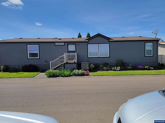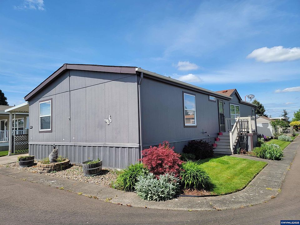 Spacious 1620+/-SF, all electric, Fleetwood on corner lot in Salem Mobile's 55+ pet friendly park. Kitchen w/ custom cabinets, pullouts & bar island. Nice separation of MBR/BA from 2 sp BRs/BA; all BRs w/ WIclosets. Heat pump (heats/cools) & fenced side yard. View your colorfully landscaped front yard from large living room or enjoy BBQs on enclosed patio. Park rent of $1,049/mo. includes water, garbage, sewer & clubhouse usage.
