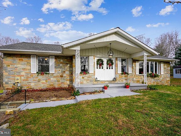 A BREATHTAKING HOME sited on a majestic 8.20 acre lot! This gorgeous home is adjacent to Morgan Run Park which comprises 2000 acres of hiking, swimming and abundant fishing. Horses are welcome too! You'll have access to top tier Blue Ribbon public schools. Privacy abounds yet still convenient to shopping and major commuter routes. This is an incredibly rare property in Sykesville Carroll County Maryland. If you love the outdoors there is abundant wildlife and many fruit, and nut trees on the property. If you like to garden you will be in heaven! Handsome hardscaping with dramatic stone walls abounds. Upon entering this estate-like setting you follow a beautiful tree lined drive to this gorgeous well maintained stone rancher. Features include a new roof with a 40 year transferable warranty and maintenance free exterior. Be dazzled by the totally upgraded gourmet kitchen with new maple cabinets, granite countertops, stainless steel appliances, pendant lights,huge island and natural Italian travertine backsplash. The huge eat in kitchen also features a warm stone covered double sided fireplace! The primary bedroom has its own bathroom and a huge bay window to gaze out on the gorgeous scenic views, The other bedrooms are well sized with lots of natural light and cooling ceiling fans. Lower level is completely and tastefully finished and has a walkout with no steps to the driveway with tons of parking for all your vehicles and toys. There is an additional bedroom with its own attached full bath as well.Additionally you will find a mirrored exercise room and an office for increased usefulness Additional outbuilding and shed for more storage.This amazing property also has a 1200 sq ft ready foundation with electric and water for a business, barn, garage or in-law suite and no Homeowners Association. You will love this home!