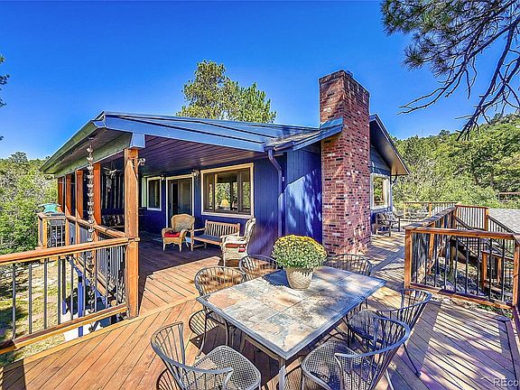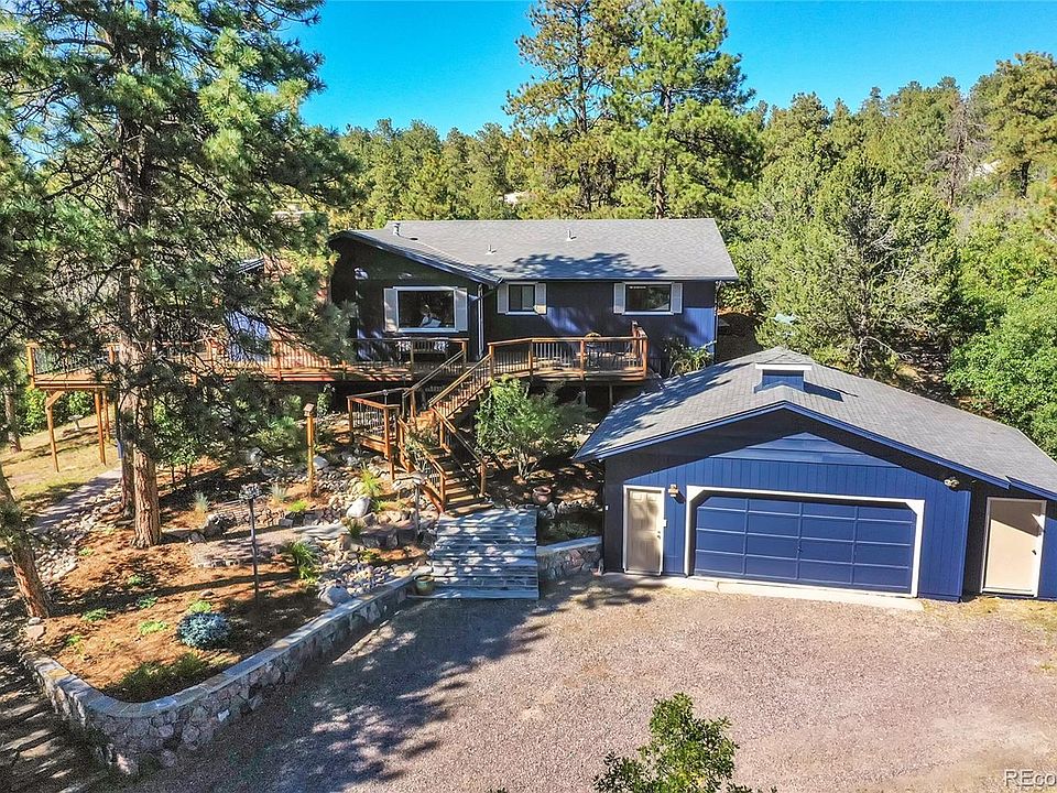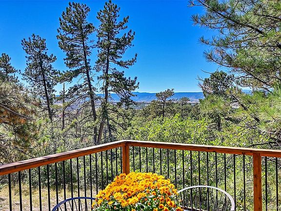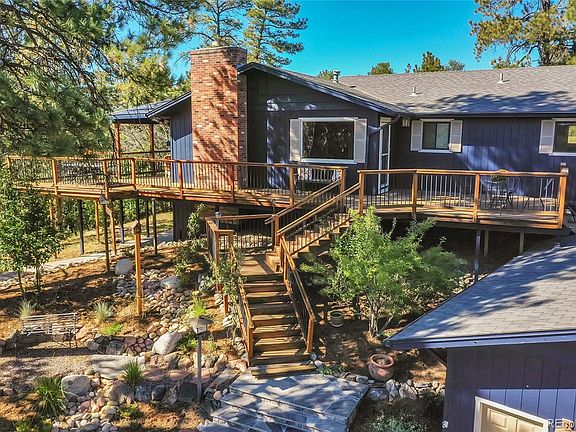 A Hillside Haven! Nestled amidst the serene beauty of Happy Canyon, this hillside home offers a lifestyle that's as breathtaking as the surrounding mesas. Imagine waking up each morning to the crisp air, the scent of pine trees, and the gentle chirping of birds. Step outside onto your wrap-around deck and be greeted by panoramic views that will take your breath away. This is more than just a house; it's a sanctuary where you can truly unwind and connect with nature. Whether you're seeking a peaceful escape after a long day or a place to entertain friends and family, this home has something to offer everyone. The main level boasts an open, flowing floor plan filled with picturesque views from every angle. The spacious kitchen has handsome stone and ancient wood countertops with a copper farmhouse sink, perfect as the central gathering point of loved ones at the holidays. The finished walkout basement provides a versatile space for relaxation or recreation, with its billiards room and additional bedrooms. Living in Happy Canyon means enjoying the peace and tranquility of small-town living with NO HOA or restrictive covenants, while still having easy access to all the amenities of nearby Castle Rock. Explore the scenic trails, visit the local farmers' market, or simply enjoy the quiet beauty of your surroundings. This is a place where you can truly escape the hustle and bustle of everyday life and find your own sense of peace and tranquility. As the sun sets over the peaks, gather your loved ones on the deck and watch as the sky is painted with hues of orange, pink, and purple. The mountains seem to come alive, casting long shadows across the valley. It's a moment of pure magic that will stay with you forever. This is more than just a home; it's a lifestyle. It's a place where you can create lasting memories, find your inner peace, and truly appreciate the beauty of the world around you.