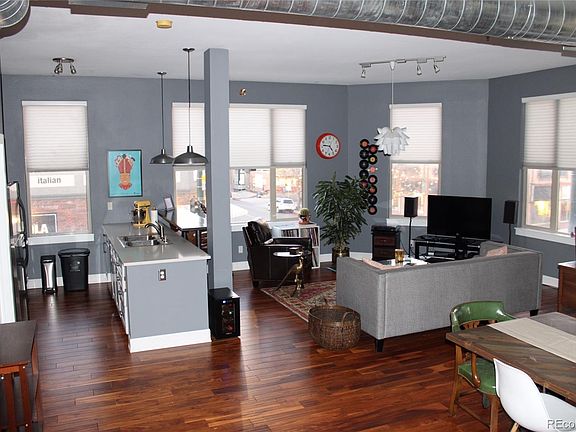 Stylish one bedroom Berkeley condo right on 44th & Tennyson! This impressive 1,100 sq ft corner unit is flooded w/natural light from the walls of windows & high ceilings. Spacious open floor plan has tons of room for entertaining, great balcony to watch the Tennyson strip, large bedroom that easily fits a king-size bed, end tables and dresser, walk-in closet, extra hall closets and storage space, and attached garage - all in a friendly building w/secured access. Brand new floors and finishes including: hardwood floors throughout, carpet in the bedroom, quartzite counter tops in the kitchen and modern cabinets. Bathroom includes tub and shower, one sink and plenty of cabinet space. Walk to all the shops, restaurants, galleries and parks in Denver's hottest neighborhood!