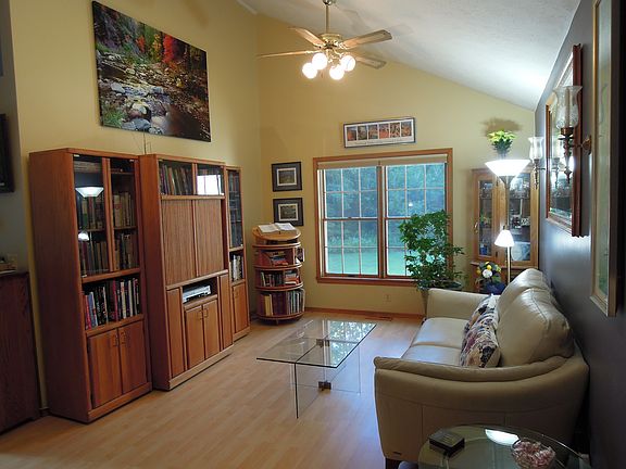 This custom-built split-level home is on a 2.6-acre wooded lot with lots of privacy and situated far off the road on a tree-lined driveway. New stainless-steel Samsung kitchen appliances, cathedral ceilings on main level and master bedroom. 30-year architectural roof installed in 2009. Central air conditioning and forced air heat. Natural gas kitchen range, hot water tank and dryer. Master bedroom has generous walk-through closet area. Family room with partial marble floor is already a guest suite complete with large IKEA closet and private back door. Walkout basement with Vermont Castings Wood stove. 22' x24' attached garage. Huge outside lawns perfect for deck, pool and outside activities.