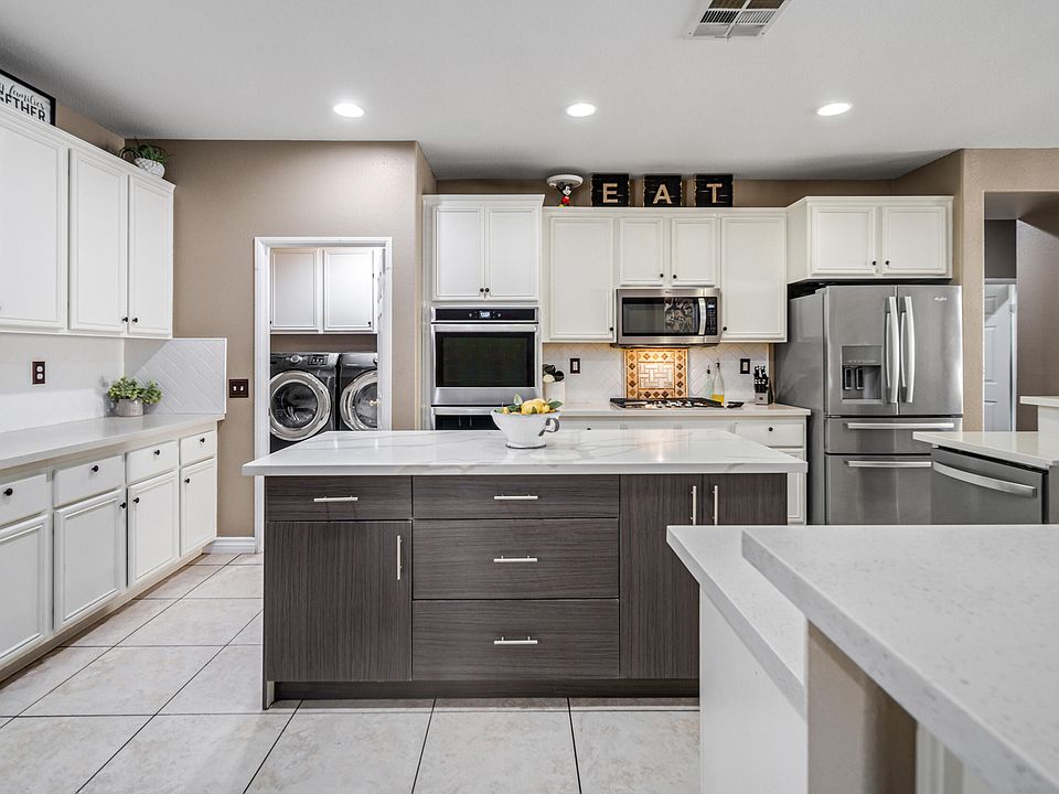 Inviting Single Story 4 bedroom Home situated on a Peaceful Culdesac. Step into the Heart of the Home with a Beautifully Remodeled Kitchen that is Expansive in Size and Features all the Modern Amenities with Ample Counter Space and Custom Finishes, including a Huge Center Island for all your Culinary and Entertaining needs. The Kitchen Seamlessly connects to the Family Room , that is Adorned with Impressive Stone Fireplace. Thoughtfully Designed Split Floor Plan with Primary Bedroom on Opposite Sides of Secondary Bedroom.