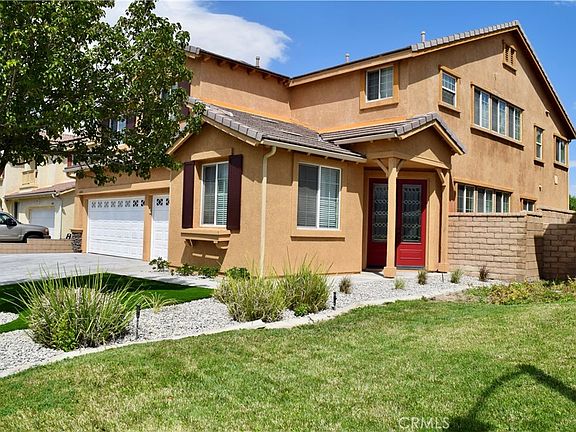 This gorgeous 3876 square foot home sits on a 6882 square foot lot in West Lancaster. Enter through double doors that lead into the formal living and dining room. The spacious, open floor plan offers plenty of natural light. Its large kitchen boasts granite counter tops, dishwasher, four burner gas cooktop, built-in range and microwave, lots of cabinet and counter space, plus a center island, breakfast bar and eating area. Sliding glass doors lead to the back yard with a concrete slab patio, newly landscaped with artificial grass and a drip system. Its family room has a gas fireplace, entertainment nook and built-in surround sound speakers. A bedroom, full bath, and a den complete the first floor. The second floor ascends to large loft and a bonus area. Three bedrooms are furnished with mirrored closet doors and ceiling fans and are near a full bathroom with a dual vanity. Its primary suite offers two walk-in closets, shower stall, soaking tub with jets, two vanities and water closet. The laundry room has hookups for a washer & dryer, a utility sink and lots of cabinet space to complete the second floor. The interior of the home has been freshly painted and has new tile floors and new luxury vinyl plank floors throughout. Other amenities include 2 new HVAC systems, 3 car garage, central vacuum, intercom system, built-in speakers and ceiling fans throughout. This wonderful property is in close proximity to schools, AV College, shops & restaurants.