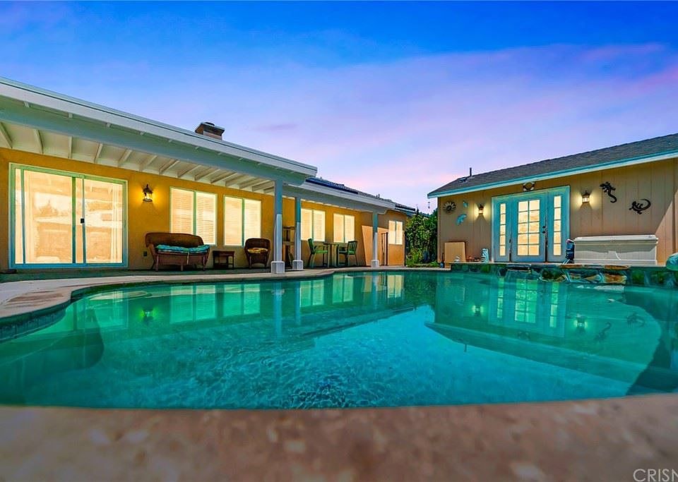 Gorgeous Single Story Pool Home with a Detached Guest House Located in a Desirable Neighborhood. Open Floor Plan, Three Spacious Bedrooms & 2 Bathrooms. This Gorgeous Home Features Plantation Shutters, & Tile Flooring. Spacious Family Room with a Fireplace. Formal Living Room & Formal Dining Room. Kitchen Offers Tile Counter Tops, Center Island, White Appliances, Walk-In Pantry, & an Abundance of Cabinets for Storage. Large Indoor Laundry Room Features Tile Counter Tops & a Ton of Storage. The Backyard Offers an In-Ground Pool & Spa, Guest House with a Full Bathroom, a Walk-In Closet. & 252 Sqft. Wrought Iron Gates Lead to Paved RV Access Parking. Attached 3 Car Garage, Possible 4th Bedroom in the Garage & Features Central AC. The Front Yard is Meticulously Landscaped with Luscious Green Grass & Mature Trees.