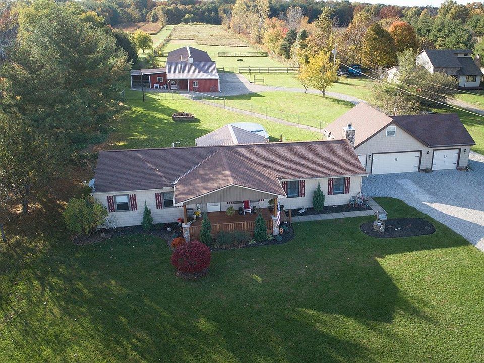 The best way to describe this property is WOW! Totally renovated in 2017 from taking walls down to create an open concept to appliances, new heat pump, upgraded septic, dark walnut real hardwood floors, add'l room above garage, to many more to list see attached Doc. Seller also was proactive and had a home inspection and completed all remedies and then some. Property also has a beautiful well maintained 5 Stall horse barn complete with a 30x40 indoor riding arena, fenced pasture ready for your animals plus a fenced in back yard with almost new above ground pool and huge deck for all your entertaining. There is a pond with a dock at the back of the property. All of this wonderfulness located in the desirable Big Walnut School District! Showings begin at open house 10/25/20 @ 1-3pm.