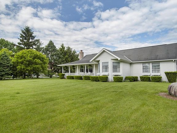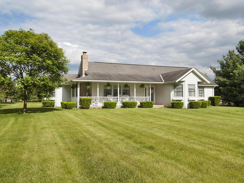 Hard to find ranch with wrap around front porch in Hilliard schools and with 1.5 acres! This home is ready to move into with many updates including the master bath.Large family room with vaulted ceiling and fireplace with floor to ceiling stone wall. Three bedroom and two baths. Three car detached garage is heated and additional out building has its own 200 amp service. This is a must see!