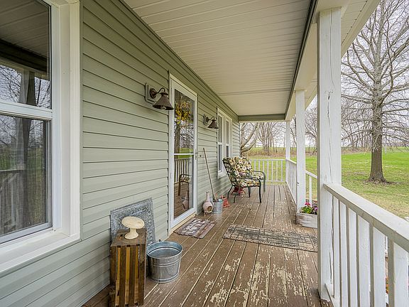 Beautiful 1.5 Story Home on 5 acres just minutes off I 70. Private home sets back off road, oasis of serenity surrounded by woods. Kids & adults love playing in the yard - like having your own personal park. Sweet front porch everyone wants for hanging out. Great open floor plan easy to live in. Hardwoods on the main. Perfectly designed kitchen, large dining area views of the land and woods. Living room with fireplace, built in bookshelves ideal space for family photos. 2nd floor 2 large bedrooms & full bath.