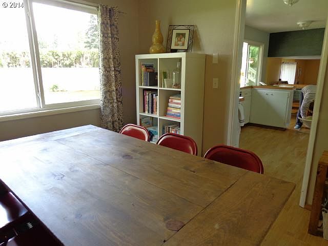 Situated on a quiet cul-de-sac, this light filled home is move-in ready. New roof, new paint inside and out. HUGE fenced back yard with water feature and raised beds. Forced air heating, formal and informal dining. Shop attached to garage. Low County taxes.