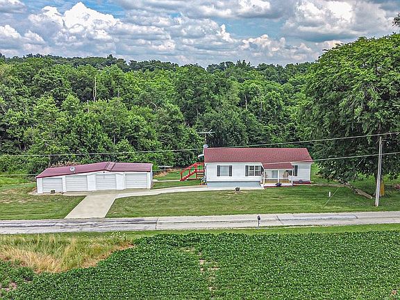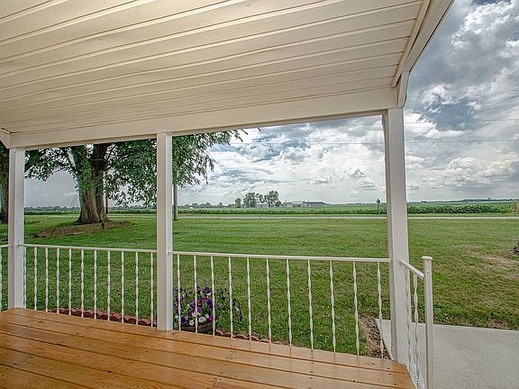 Pride of ownership shows in this 3 bedroom 2 bath home on over an acre of idyllic countryside. You'll love the views of farmland from the front porch, the woods from the back deck or enjoy them in the enclosed porch off the dining room year round! The kitchen boasts Corian counters and a breakfast bar. The master bedroom features attached bath. All bedrooms offer a walk in closet, laundry room has additional cabinets for additional storage. Plenty of room for a garden out back. New porch decking 2022, new roof 2016, new metal roof on 4 car garage 2014, new garage doors 2018, septic system serviced 2021. Recent updates include exterior doors, gutters w/ guards on garage and a new concrete pad. 4 car garage includes an attached shop, storage and a shed in the rear! Come live your country dreams! Sale is contingent upon seller finding suitable housing.