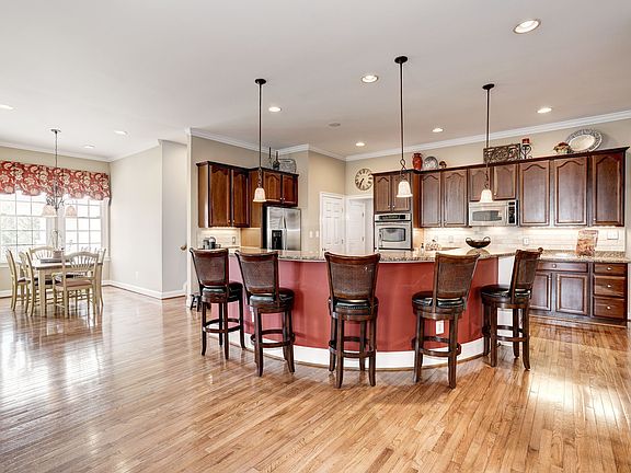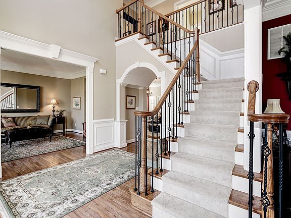Stunning home with custom details, hardwood floors, and molding details on main level. Gourmet kitchen with wraparound breakfast bar, stainless steel appliances, double ovens, walk-in pantry, and bar sink. Outside spaces include screened gazebo, deck with trellis, custom patio with stone fireplace and bar area, covered side porch with swing and large corner lot, and fully fenced back yard. All bedrooms feature ensuite baths, and master includes tray ceiling and 2 walk-in closets. Bonus room on upper level. Lower level features recreation room, wet bar, gaming area with bar seating, bedroom, full bath, home gym, storage and walk-out to rear. Special features include plantation shutters, mudroom with custom built-in storage cubbies and seating, custom closet organizers, irrigation system, and built-in speakers.