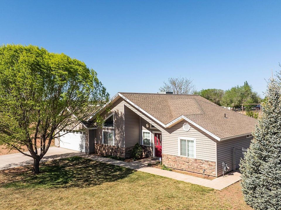 Welcome home! As you step inside, you're greeted by an inviting split floor plan, seamlessly blending functionality and style. The heart of the home is a sprawling living area, flooded with natural light cascading through expansive windows. The well-appointed kitchen boasts sleek countertops, ample cabinetry, stainless steel appliances, perfect for culinary enthusiasts and entertaining alike. Nestled away for privacy, the master suite is a serene retreat, complete with a luxurious ensuite bathroom and generous walk-in closet. Three additional bedrooms offer versatility, whether used as cozy sleeping quarters, home offices, or hobby rooms. Step outside to discover your own a large fenced backyard with mature trees, offering ample space for outdoor gatherings, gardening, or simple... unwinding. Convenience is key with a garage providing shelter for your vehicles and extra storage space. Plus, with no HOA, you have the freedom to personalize your property to your heart's content. Located in a neighborhood not to far out from the town, this home offers a peaceful escape from the hustle and bustle of city life while still being conveniently close to schools, shopping, dining, and recreational amenities. Welcome to your forever home, where comfort, style, and freedom blend seamlessly to create the perfect living experience.