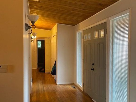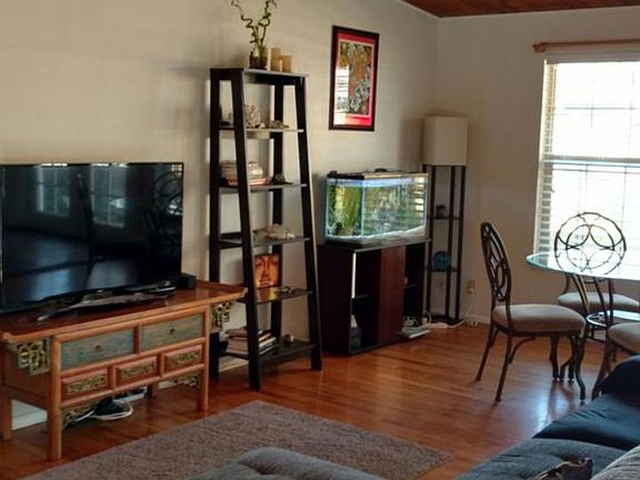Available 6/1/25. Spacious 2 bedroom 1 bath unit in triplex. Enjoy a nice patio with a large fenced yard just off the kitchen. The kitchen has a large pantry, stainless steel appliances, over-the-range microwave and an area for a dining room table. There is beautiful natural travertine tile flooring in the bathroom and kitchen. Featuring oak hardwood flooring throughout except the kitchen and bath. A nice eat-up bar perfect for entertaining. A one of a kind...the entire unit has elegant wide plank pine vaulted ceilings. The living room is quite large and receives great west facing and north facing light. There are washer/dryer hookups inside the laundry closet, just off the kitchen. The bathroom features a shower/tub combo and a double sink vanity. The unit comes with a covered carport for one car with a small outdoor storage closet adjacent to the carport . The location of this neighborhood is within walking distance to Thunderbird Lake, Safeway, Walgreens, and the CU/Elevations Credit Union. Dogs are allowed with a $50/month dog fee. NO CATS, NO SMOKING., NO VAPING, NO WEED. Please call or text show contact info for showings. Tenant pays utilities