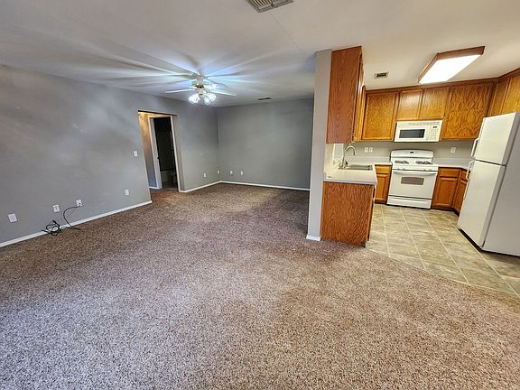 Very clean and spacious 2 bedroom 2 bath unit with laundry hookups and single car garage. Large fenced backyard and boat or RV parking. Ceiling fans throughout. Walk in closet in master