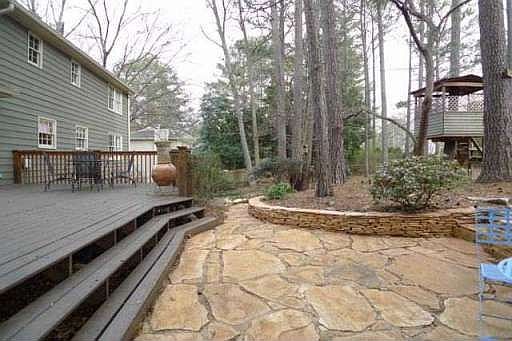 Adorable home with a huge, fenced back yard! The yard has lots of gorgeous stonework in the front and a huge stone patio in the back plus an irrigation system! Enter the main level to a foyer which opens to a large formal living and dining room on one side and the family room on the other. The kitchen has beautiful maple cabinets with a pretty tiled backsplash and an island with a breakfast bar. It is open to the family room - perfect for entertaining. There is also a large breakfast room with more custom cabinetry. It sits in a bayed window area overlooking the backyard and patio. All of this space has hardwood floors. There is a huge laundry room off the kitchen with a built-in desk, a built-in ironing board and and a large folding table. The main level also features a full bathroom. Upstairs the large master bedroom has a trey ceiling with an updated bathroom. There is a bonus room off the master bedroom which would be perfect for an office, a workout room or a nursery. It has built-ins and wonderful closet space. The other two bedrooms are very large, one featuring bead board wainscotting. The upstairs bathroom is trimmed in beadboard also, even on the ceiling! There is one room finished in the basement, with lots of unfinished space for storage or expansion. There is a perfect workroom space with a door to the exterior. The home also has a tankless water heater - you will never run out of hot water! There is fresh neutral paint, updated lighting and newer carpeting. This is in a great location & top east Cobb schools. 04/21/12