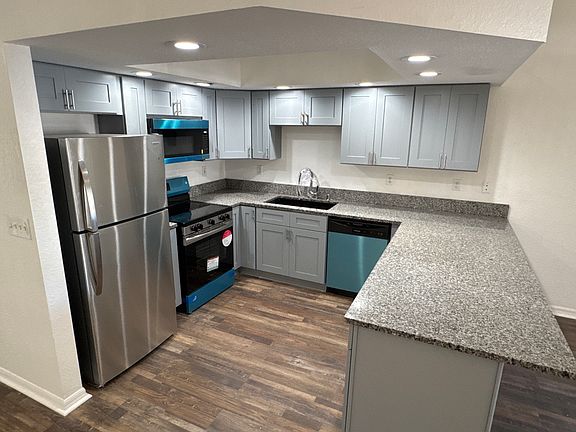 Full renovation almost completed on this upstairs, end unit with lots of windows for natural light. Check out the pictures of the new kitchen, stainless steel appliances, floors, vanities and paint. Granite counters about to be installed. It's so new the protective plastic is still on the appliances! Contact Lauren for your showing. 727 24O 62 12. Text for quickest response. The complex also has a POOL and on-site coin laundry. Tenant pays all utilities. Owner pays for trash, landscaping and bi-monthly pest control. Sorry, no pets.