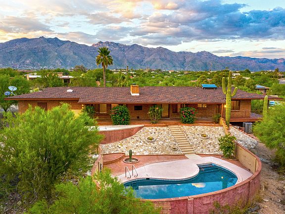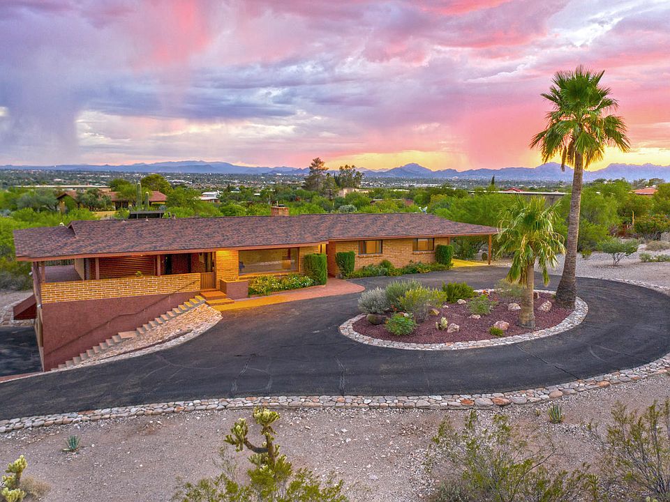 Range price. Seller will counter/accept offer bet $499,000&$520,000. Perched on nearly two private hilltop acres in desirable Fletcha Caida Ranch Est 8, this classic Foothills burnt adobe boasts stunning, unobstructed mountain & city VIEWS . Rare opportunity to own a parcel that combines TWO LOTS so your views are protected forever! Possible lot split or add Casita. Split BR floor plan features 4BR/3BA (one is currently an office w/sep entrance). Move right in & enjoy the original vintage features or let your inner designer transform the space. Enjoy forever city views from the wraparound deck & patios that overlook the sparkling pool. Finished air-conditioned lower level off garage has been transformed into several office/bonus rms, perfect for a home-based business. More... Two garage and one carport. Newer furnace, AC, water heater, roof, pool pump. Long driveway has extra parking & circular turnaround. Did we mention the VIEWS? Don't miss this opportunity to own a foothills ranch property that is on the market for the very first time!