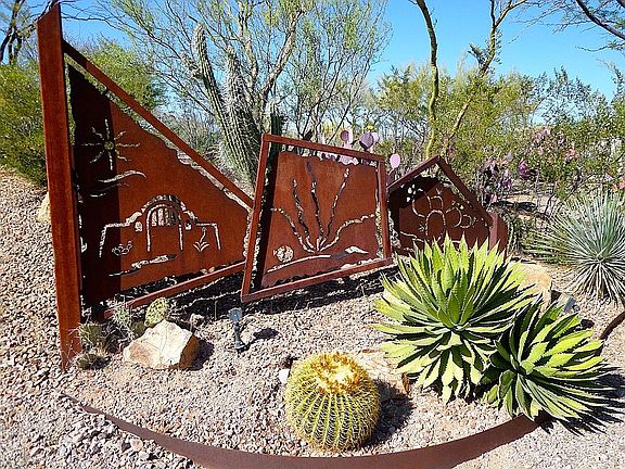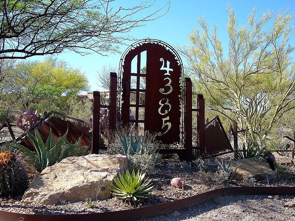 Own your private Shangri-La on over an acre of lush desert nestled within custom iron fencing with gates that welcome you home. This luxury home is an entertainers dream with amazing artistic flair. Begin your tour in a welcoming courtyard and to the quiet sounds of water, as you approach the outdoor patio and fireplace, tastefully covered by an iron pergola and full-length covered patio and porch. Inside you will find an upscale gourmet kitchen including maple cabinets, tasteful slab granite, high-end appliances, opening to an off-kitchen living area, with fireplace and beautiful hardwood oak flooring. Step outside to enjoy the grand pool-side oasis with multiple patios and multi-sided fireplace, gourmet outdoor kitchen, majestic views and breathtaking sunsets. See Matterport Tour Today!