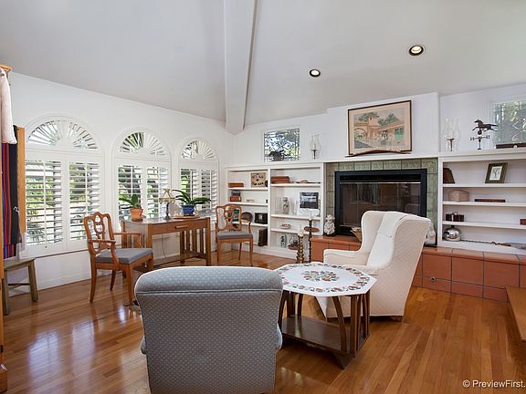 Your dream home awaits! Remodeled w/spacious open floorplan w/gorgeous use of windows, materials, fixtures throughout.Formal entry, vaulted ceilings, gorgeous wood floors.Formal living room w/custom tiled fireplace surround, leaded windows, custom built-ins.Accented formal dining area. Kitchen w/granite counters, large island w/sit down bar, gas range, 2nd sink, Viking fridge-kitchen opens to breakfast area & large family room. Laundry room, walk in pantry.Large bedrooms & custom tiled bath.2 bedrooms & full bath on 1st floor. Large master suite on 2nd floor with large private patio & separate balcony. Access to exterior stairs. Large tiled master bath w/soaking tub & separate shower. Master bedroom w/3rd fireplace. Rear yard is just a piece of Paradise w/brick patio, walk ways, gardens, lush landscaping. Access to detached guest house with large bedroom & full tiled bath. Large 2 car garage w/alley access with extra storage. Enjoy ocean views from large expansive rooftop view deck.