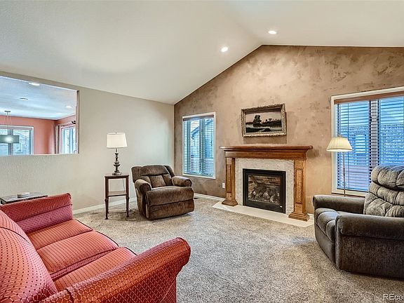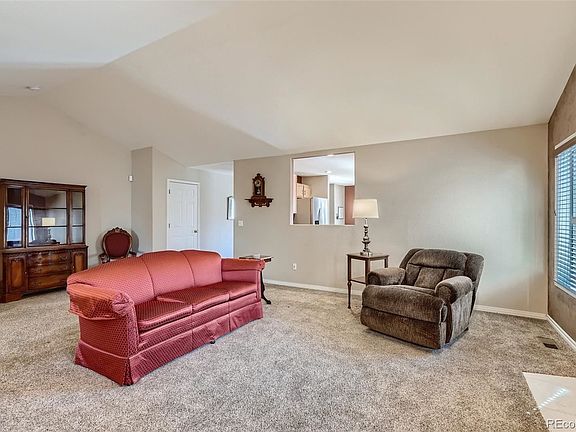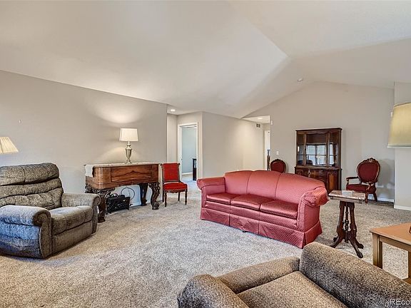 This well-maintained brick ranch style three bedroom, two bath home is a turn-key property ready for new owners to make it their own. The inviting space features vaulted ceilings in the large, open living room, with newer carpet. A gas fireplace with mantle on a feature wall create a conversation area, with real flames and functional heat. A pass-through window connects the living area to an eat-in kitchen with ample cupboard space, hard wood flooring, beautiful granite counter tops and a three-year stainless steel appliance package. This space perfect for entertaining and also features sliding glass doors that lead to a fenced patio area creating a private space to enjoy outdoor dining. The home features large windows with ample natural light, highlighting soothing neutral colors throughout the bedrooms and baths. The primary bedroom features an upgraded en-suite bathroom with gorgeous tile work in a walk-in shower with bench, dual sinks over contemporary cabinetry with a modern lighting fixture and a walk-in closet. This one level-living property with ADA assistance bars is perfect for those with mobility limitations. Additional bedrooms are large and airy, the guest bathroom also has been renovated for an updated feel. A tiled laundry room with upper cabinets finishes out the home's appeal. This home is located in a quiet community adjacent to Prospect Park with access to I-70 leading to the mountains for nature lovers; and to downtown Denver for commuters or those who want to experience the buzz of the big city while residing in suburban calm.