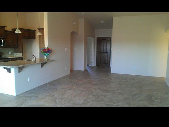 Tile throughout the entire house and to make it better they are all 24 inch tiles ! Custom master shower and garden tub surround also, tile surround in guest bath. Vaulted ceilings in master and living areas. Granite countertops in kitchen and bath. Custom plantation shutters ! Backyard landscaping is wonderful.