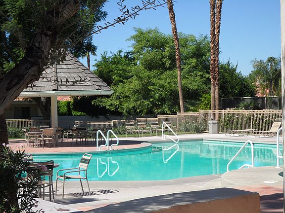 IN ESCROW...Very desirable floor plan with 2 Master Bedrooms and 2.5 baths. Bed #1 has 2 walk-in closets and #2 has two large wardrobe closets with sliding mirrored doors. Both bedrooms have access to different patio areas. Unit has an interior location so the rear patio is on the greenbelt and only about 100 yds from the closest community pool. Ceilings are high (15 feet?) and smooth. 6 tile in entry and traffic area. 4 tile on kitchen and bathroom counter tops. There is a tub/shower in one bathroom and a walk-in shower in the other. Desert Breezes has Tennis, Gym, Pools & Clubhouse. The home is less than 1 mile to the PNB Paribas Tennis Stadium @ Indian Wells. Resort-type spa amenities are available in La Quinta & Indian Wells (5 miles/10 min drive), Empire Polo Grounds (home of Coachella Fest I, II and Stage Coach, 16 min), Golf (5 min), La Quinta CC (11 min), PGA West Golf (16 min), Movie Theatres (Palme d'Or 11 min, The River 15 min), Live Theatres (11 min), Casual & Fine Dining and more Neighborhood Description Surrounded by upscale Country Clubs. Desert Breezes is not a golf development, but there are many golf courses very close by (several are open to the public). Not a senior development, children and young adults are welcome. HOA fees are very reasonable.