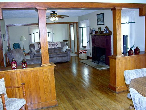 Rural Monticello home boasting 4,300 square feet, 4-5 bedrooms, 3 baths, 2 large living areas, a partial basement, hot tub room, and 2 garages.Garage sizes are 24 x 48 and 20 x 30 and are connected by a blacktop driveway. Beautiful hardwood flooring in the dining room and fireplace area. Three bedrooms on the main level and 1 bedroom upstairs along with an open television type room that could be made into a 5th bedroom. 2 furnaces and 2 central air units. All appliances and the hot tub stays.