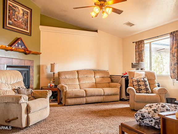 PRICED BELOW MARKET! Located in the heart of Prescott Valley this cozy 3 bed 2 bath home boasts a split floor plan, with vaulted ceilings, living room with a gas fireplace to keep you warm on those cold winter days. The Primary bedroom features a large walk-in closet, with a tub, stand up shower and dual sinks. Separate Laundry room washer and dryer included. Oversize 2 car garage, fully insulated and to make things even sweeter, RV parking with dump station! Fenced in backyard with plenty of privacy. Location is prime: Walking distance to Mnt. Valley Park, multiple schools, The Boys and Girls Club and just a 5 minutes drive from a plethora of restaurant and shops. The best part, NO HOA! Giving you the freedom to really make this your home. Don't miss this great opportunity!