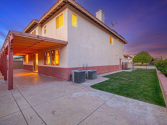 This Mediterranean-style villa has a charming front porch that welcomes you to a very comfortable lifestyle that includes a fully paid ($42k), massive 27 solar panel system (10.35kW system). Upon entry, the open concept floor plan includes formal living and dining spaces that are open via elevated ceiling to the elegant staircase with beautiful balconies surrounded by 2 lofts above on the second floor. The first floor includes a huge eat-in kitchen with an abundance of counter space, cabinetry for storage and pantry, center island, gas cooktop, electric oven, and built-in microwave. The family room adjoins the space with a cozy fireplace, entertainment niche and sliding patio door to access to the rear yard. There is a downstairs bedroom; bathroom with shower; laundry room with quartz countertop, deep sink, and lots of storage; and direct access to the 3-car tandem garage with a 50A/220V outlet to plug in a charger to power electric vehicles, etc. Upstairs in addition to the open split loft spaces are 3 additional bedrooms, including a spacious primary suite with large walk-in closet, box-bay window with charming large window seat, and fully upgraded ensuite bathroom with newer tub, separate shower, and dual sink vanity with quartz countertop. Outdoor spaces include stamped concrete, a patio cover that runs the length of the home, block wall surround, wrought iron gate with RV access possible! There is a large grassy area on the side yard for kids and pets to play. Take the virtual tour! A must see, this home will not disappoint! Turn-Key and move-in ready just in time for the first day of summer and start saving with paid solar from now on!
