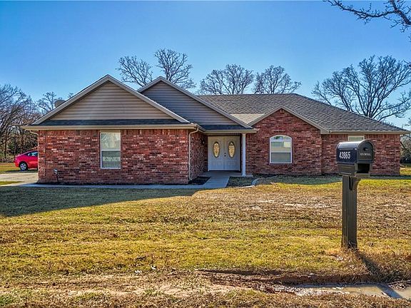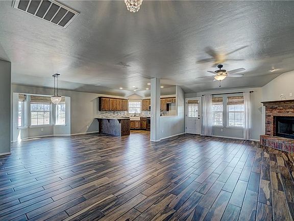 Move in Ready! Peaceful country living and setting close to town. Beautiful home with wood-looking tile flooring throughout the open living areas. 3 bedrooms, 2 bathrooms, high ceilings, wood-burning fireplace, ceiling fans throughout. The kitchen will certainly be the hub of the home! Offering plenty of prep space and cabinets, granite, deep farmers sink, snack bar, and stainless steel appliances. Pampering owner suite with tray ceiling, huge walk-in closet, dual sinks, relaxing soaking tub and full shower. Huge 3/4 acre lot. Backyard oasis with covered patio, lots of shade trees and beautiful views of the shared pond. Make your appointment to view this great property and make it your dream home!