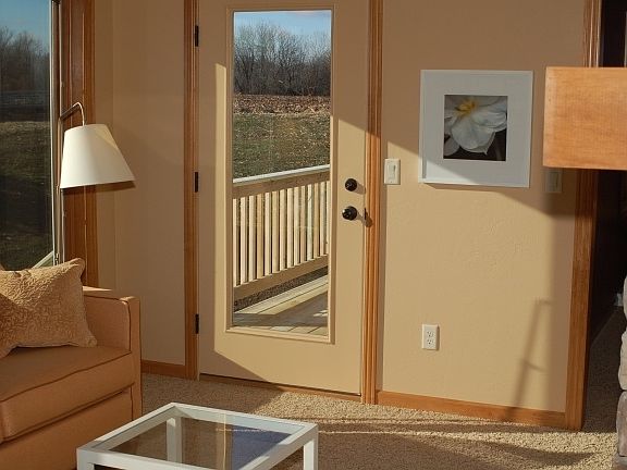 Beautiful west side two bedroom, one bath condo featuring first floor laundry, full basement with daylight windows, sun room with fireplace, cathedral ceilings, walk-in tile shower, custom paint, barrier free, central air, large deck overlooking private back yard, hardwood floors. This is not your typical condo!