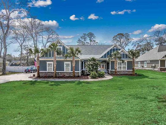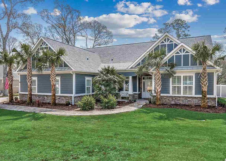 Craftsman Estate home located in a Intercoastal Waterway Community Little River, SC. Open and Airy 5 BR/4 BA quality custom home. Home Exterior has Cement Board Siding with Stacked Stone Accents. Leaf Guard Gutters. Interior offers arched cased openings with deluxe 5 1/4 crown moldings, chair rail, 7 1/4 baseboard, well appointed wainscoting and custom window trim, 12' ceilings in the great room, dining room, kitchen and breakfast area with customized coffered ceilings in the great room. Double tray rope lighted ceilings in the Dining Room and Master Bedroom, Bull Nose Corners throughout. All Custom Closet Shelving features Wood Slated shelves. Propane Tankless Water Heater. Plantation Shutters in all bedrooms. FAMILY RM: A new look at innovative way to experience indoor/outdoor living. Multi-slide patio doors folding into the wall. Linear Electric Fireplace,Windmill Style Ceiling Fan, Custom Book Case & Shelves. KITCHEN: Granite counter tops, 36' & 42' Design Solid Wood Cabinets, Tiled Backsplash, Black Stainless Appliances & Reverse Osmosis Water System. MASTER BR/BATH: Tile Shower, 2 Adult Height Double Vanity w/ Granite countertop, Linen Closet, Owners Walk-in Closets, 5 Panel Pocket Doors & Custom Shelving. BONUS RM/BATH: Large 13.8x19.6 Rm with Custom Tile Shower and Vanity with Granite top LAUNDRY RM: 2 Base Cabinets & 2 Upper Cabinets w/ Granite Counter top & Custom Mud Bench with Shoe Storage, Bead Board & Coat Rack. REAR PORCH & BACKYARD ENTERTAINMENT AREA: Walkout onto Screened in Porch with Porcelain Tile, Outlet for Flat Screen TV. Luxury Saltwater Pool with extended patio. White Vinyl privacy fence, Gas line for Outside Kitchen, added 200 & 100 amp. Large 2 car side load garage, Trimmed & painted with Epoxy non-skid flooring. Home is perfectly situated on a 1/2 acre home site lot. Request detail feature sheet from your agent. Square footage is Buyersresponsible for verification of all information.