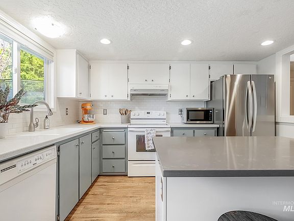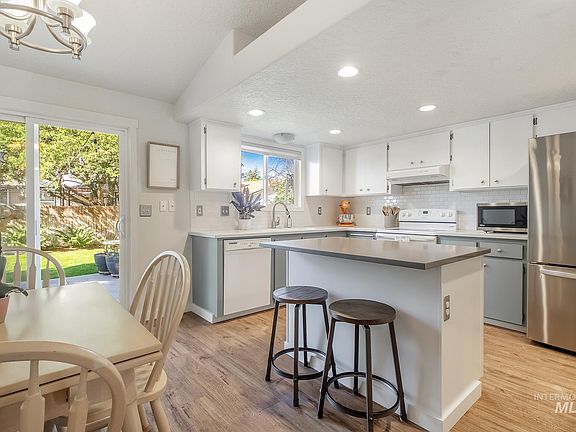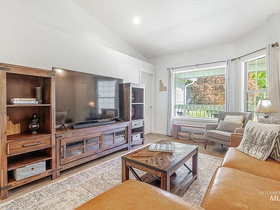 Discover the perfect blend of elegance & comfort in this stunning Southeast Boise home, where natural light & modern design come together to create a warm & inviting space. Step into the naturally lit living areas w/ laminate plank flooring, open kitchen featuring a beautiful island, quartz countertops & a gas line to the oven. The master suite has dual vanities for a touch of luxury. The home’s thoughtful design extends outdoors to a breathtaking backyard oasis. Imagine evenings spent on the expansive stamped concrete patio, gathering around the built-in fire pit w/ friends & family in a setting that feels like your own private park. Practical upgrades include a new roof in 2018 & full new HVAC system update in June 2021. RV parking & 2 sheds perfect for additional storage and/or shop. Living in this community means enjoying peaceful, scenic surroundings & easy access to the amenities of the open 7-acre Cypress Park featuring dog off-leash hours, playground, tennis court & beautiful Boise Front views.